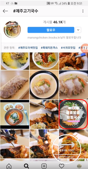 최근에 대행을 시작한 업체의 오피셜계정입니다. 제주도에있는 국수집이예요. 어떤 공통점이 보이시나요?