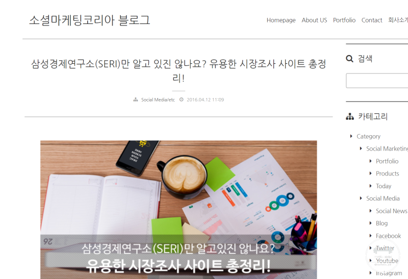 실제로 이 사이트는 국내 한 소셜 마케팅 대행사의 블로그예요. 회사 소속의 마케터로 일을 하면서 자료조사 – 특히, 통계자료나 경제연구소 자료를 검색해야하는 일이 많았을 때 – 를 할 때, 검색하다가 찾은 사이트예요. (저는 이 회사와 아무런 관련이 없답니다.)