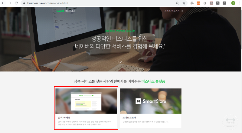 검색 마케팅 부분을 클릭해 주세요.