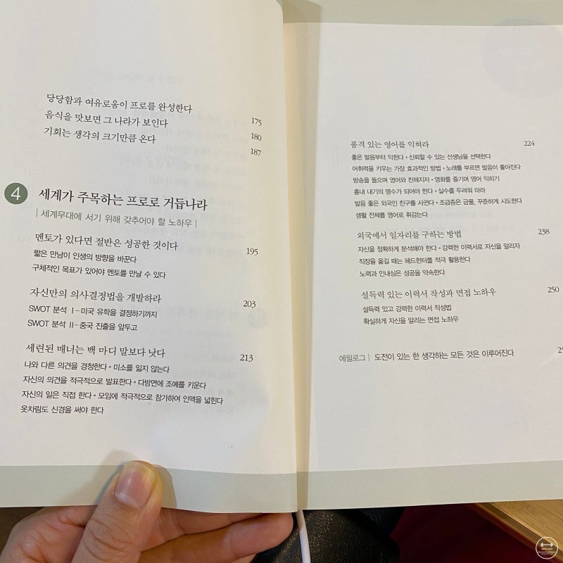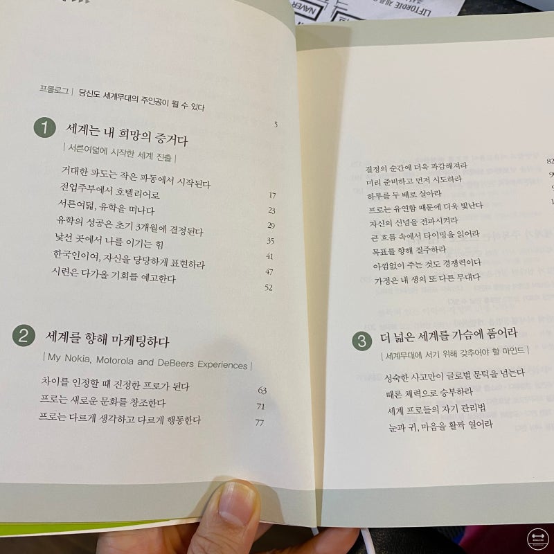 사실 이 책은 엄밀히 말하자면 마케팅 이론이 담긴 전형적인 매뉴얼 같은 책은 아닙니다. 대신, 글로벌 마케터가 되고 싶은 사람이 가져야 할 마음가짐과 삶을 대하는 태도 등을 알려주는 자기계발서 느낌의 인생 마케팅 책 이라고 할 수 있을 것 같아요.
