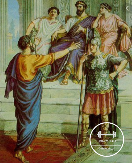 죽음이 결정되는 최종 재판을 앞둔 사도바울이 이스라엘사람임에도 불구하고 로마황제 앞의 법정에서 히브리어가 아닌 로마어로 유창하고 당당하게 최종변론을 하고 결국에는 처형을 다하는 장면이었습니다.