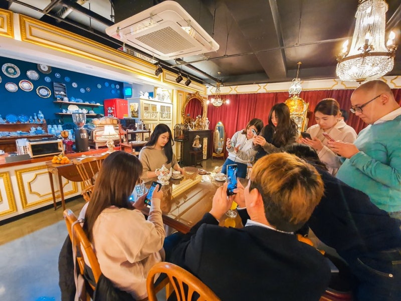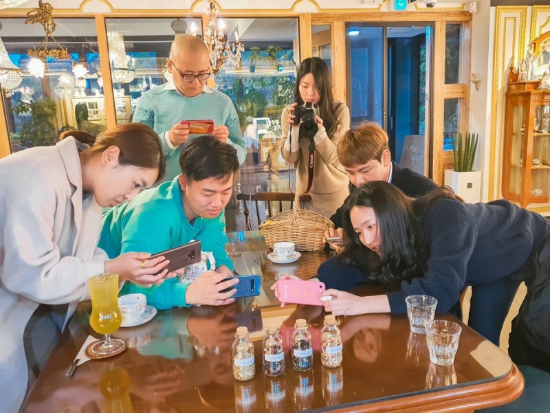 강사로 온 사진작가 너의그늘님 함께 일정을 보냈기 때문에 일정 중간 예쁜 카페에서 스마트폰으로 예쁘게 사진 찍는 법을 짧게 배웠었어요!