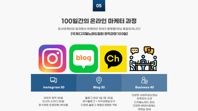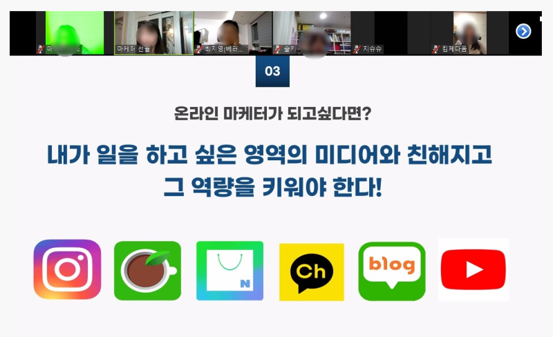 뜻이 맞아 온라인 마케터의 길을 걸어보기로 다짐한(?) 분들과 함께 최소 60일에서 최대 100일동안 이론+실습이 함께하는 온라인 마케터 양성과정을 진행해 보려고 해요.