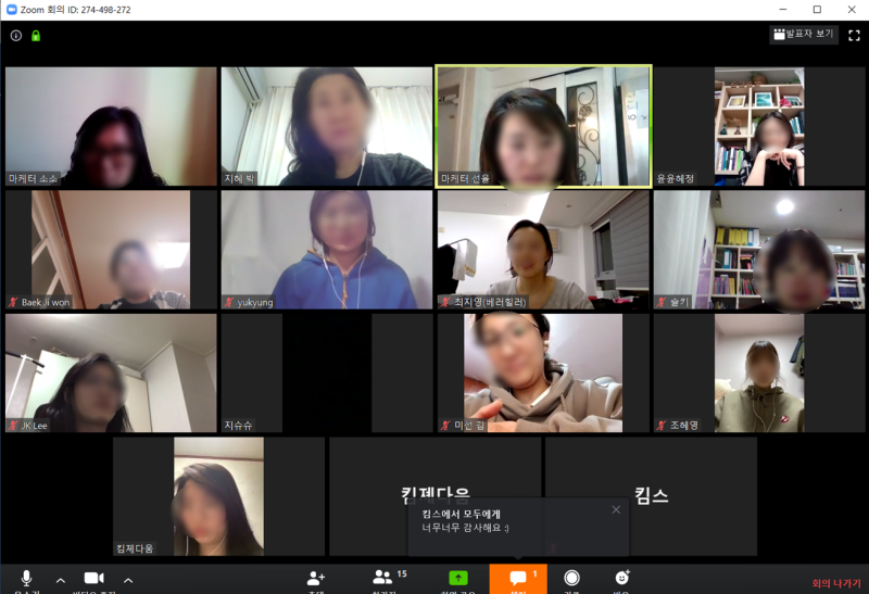 다행히, 제 화면 하단에 보여지던 분들이 소리는 안들리지만 중간중간 고개를 끄덕끄덕이고 필기구로 필기를 해 가면서 듣는 모습이 보여서 강의를 하는 내내 매우 큰 힘이 되었습니다.