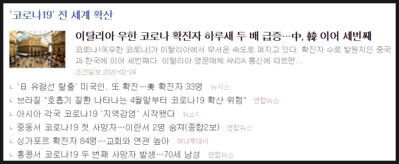 비단 아시아지역 뿐 아니라 이탈리아를 비롯한 유럽, 이스라엘 등지에도 계속 확진자가 나오고 있는 것이 새삼 무섭고 안타깝게 느껴집니다.