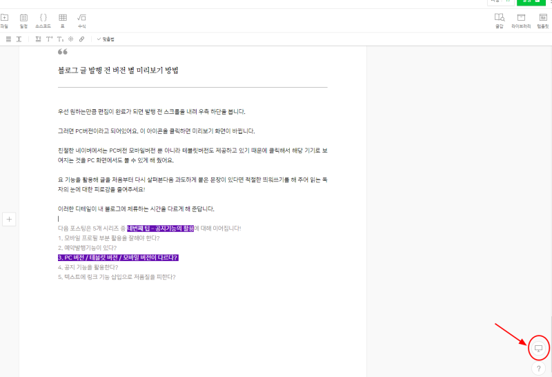 > 블로그 글 발행 전 버전 별 미리보기 방법