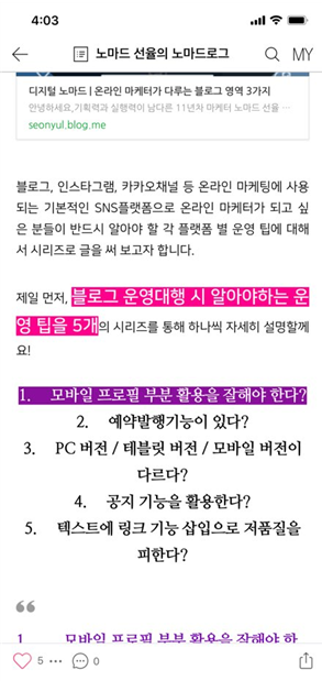 [ _1\. 모바일 프로필 부분 활용 팁_](https://seonyul.blog.me/221846697544)