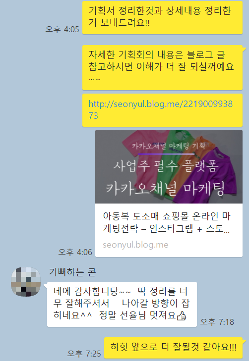 [ _사업주가 반드시 알아야하는 카카오채널 마케팅 – 옷 도매업 사례 기획 엿보기_](https://seonyul.blog.me/221884115416)