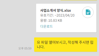 우선 컨설팅 의뢰를 받고 일정을 잡은 후 바로 사업소개서 파일을 사업주분께 전달했습니다.