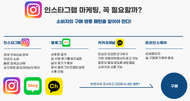 인스타그램, 네이버블로그, 카카오채널, 유튜브 등 다양한 플랫폼이 존재하고 그 플랫폼별 소비자의 행동패턴과 반응스타일은 전혀 다르거든요.