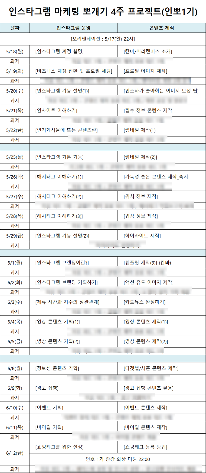 > 인스타 마케팅 뽀개기 4주 프로젝트 커리큘럼 및 진행내용