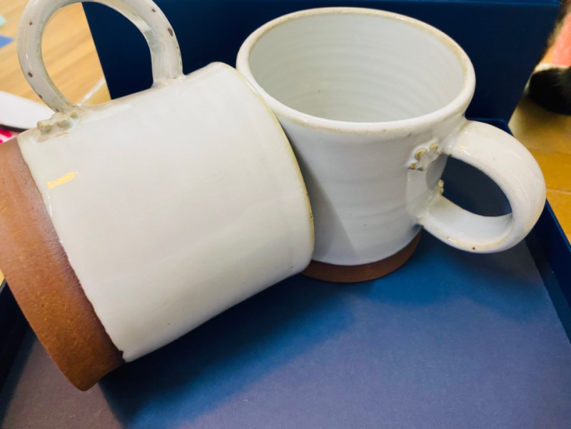 와이프분께서 만든 컵들과 스승님이 쓰신 책이라고 하셨습니다.