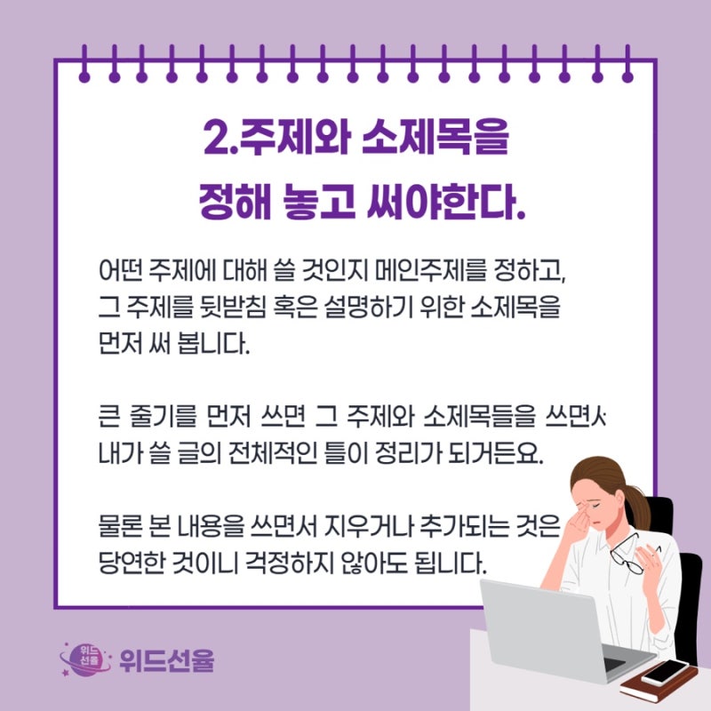 > 2.주제와 소제목을 정해 놓고 써야한다.