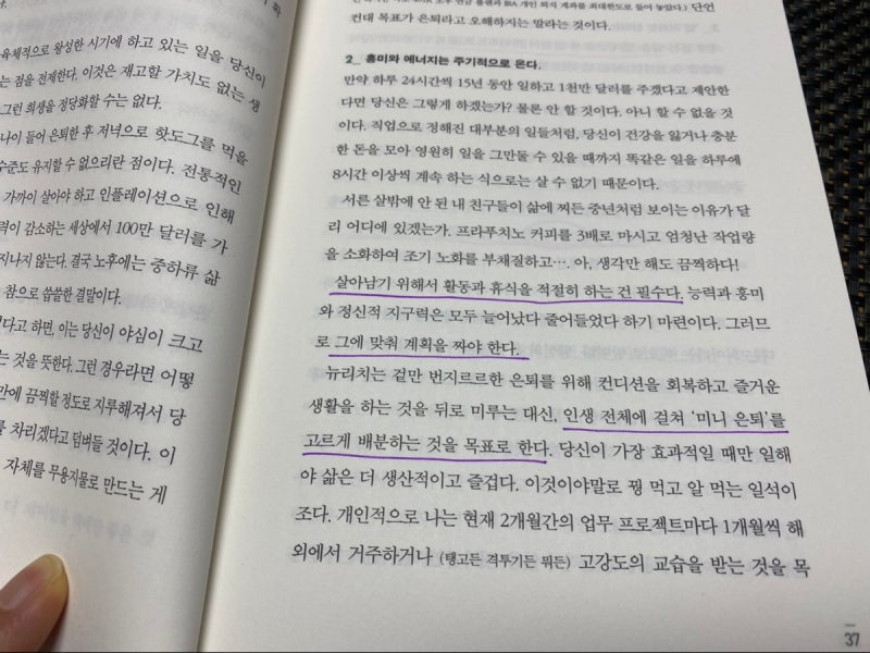 그 퇴사 이후의 삶을 혹은 회사를 다니면서도 일하는 시간을 줄일 수 있는 방법을 꼼꼼히 설명해 주고 있습니다.