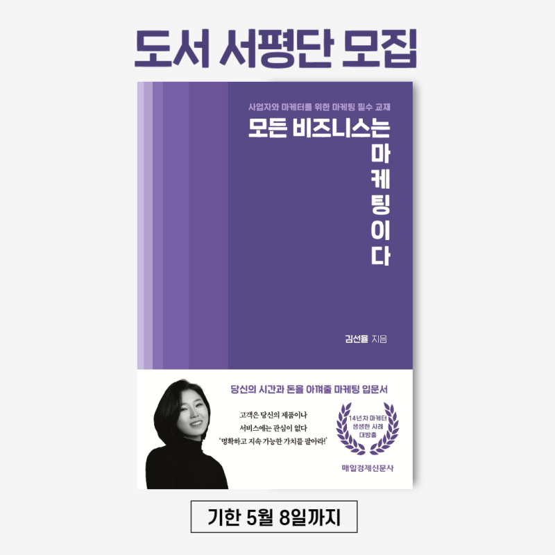 [ 서평이벤트| <모든 비즈니스는 마케팅이다> 출간기념 서평단 모집 안녕하세요, 사업자와 마케터를 위한 마케팅 필수교재 <모든 비즈니스는 마케팅이다>의 저자이자 14... blog.naver.com ](https://blog.naver.com/seonyul/222713516081)
