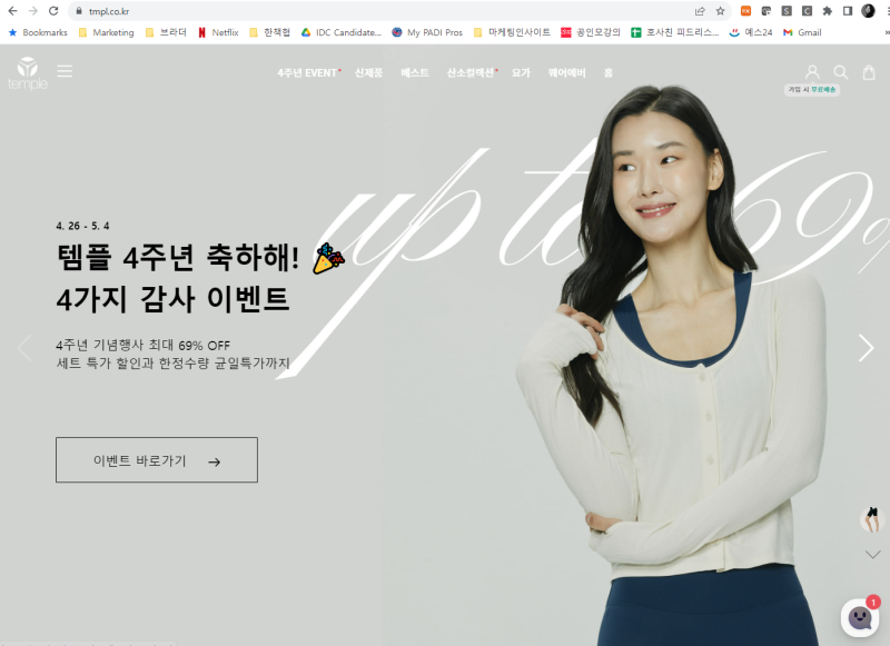 운동복 - 레깅스, 스포츠브라 등 - 을 판매하는 템플이라는 브랜드예요.
