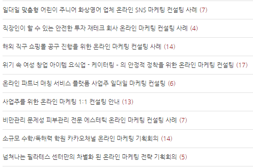 자기 회사를 위한 브랜딩과 마케팅에 대한 컨설팅을 요청하신 분들이 대부분이었죠.