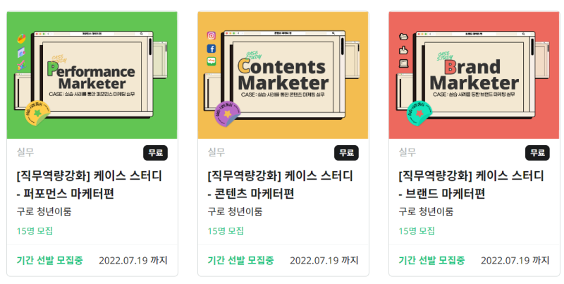 각각 콘텐츠 마케터 과정과 브랜드 마케터 과정을 진행합니다.