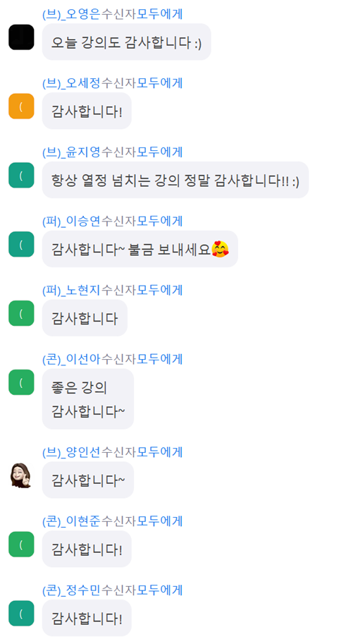 매 시간 강의가 끝나고 질의응답 시간을 가졌어요.