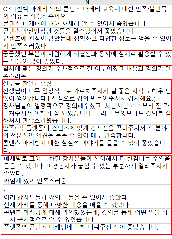 > 콘텐츠 마케터 과정 피드백 요약