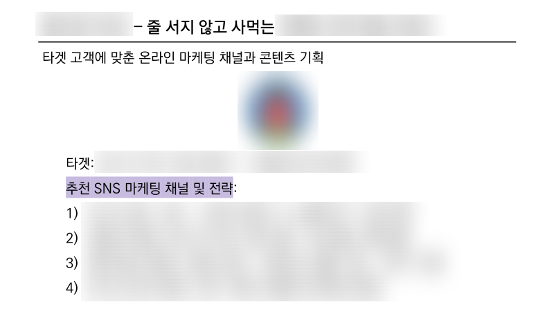 > 타겟 맞춤 온라인 마케팅 채널 및 콘텐츠 기획