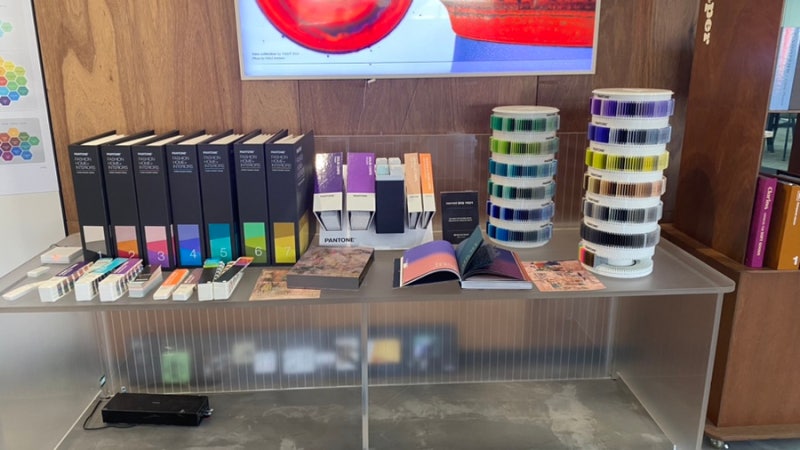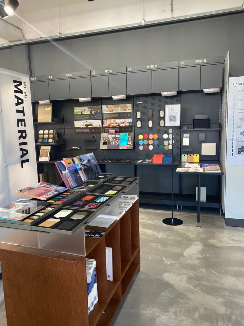 한쪽 코너는 펜톤컬러 전용(?)테이블이었어요.