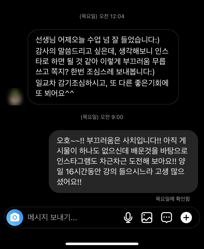 인스타그램을 전혀 안하시지만 DM으로 감사인사를 해 주신분 등