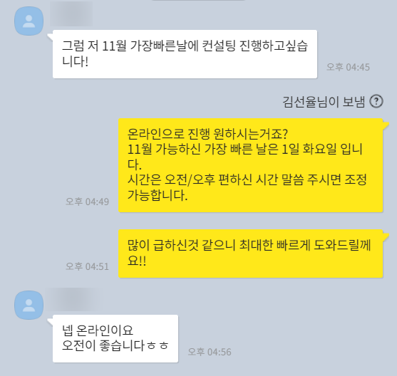 제 [카카오채널](https://pf.kakao.com/_xckIAxb/chat)을 통해 컨설팅 의뢰가 들어왔습니다.