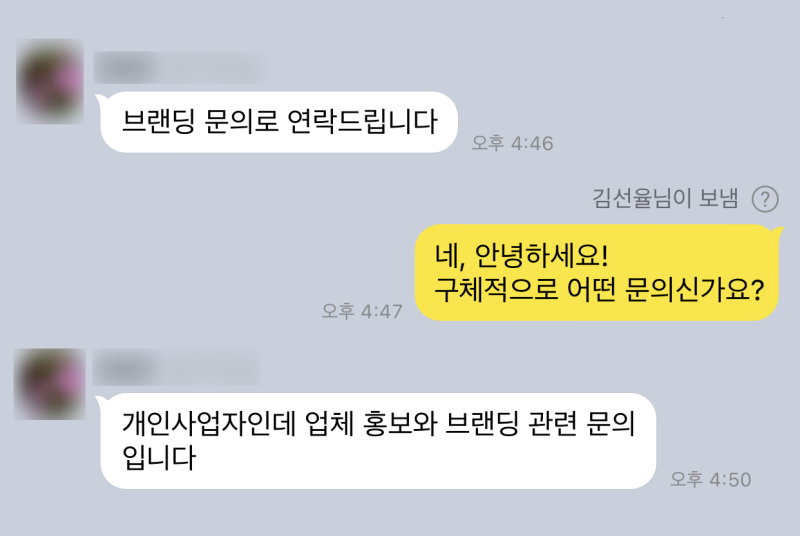 처음에 이야기 한 "브랜딩"문의가 아니었습니다.