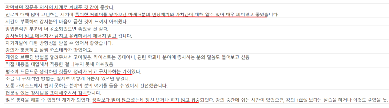 담당자 피셜, 다른 특강 대비 학생들의 중간 이탈률이 적었다고 합니다.