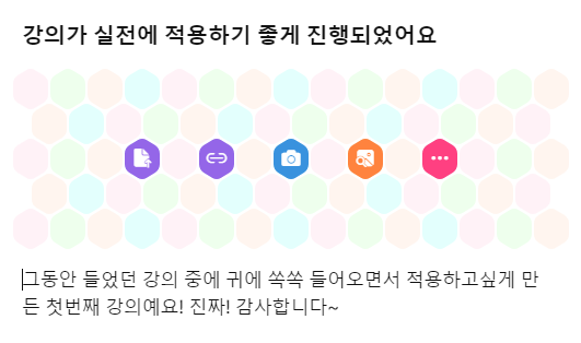 > 강의가 실전에 적용하기 좋게 진행되었어요.