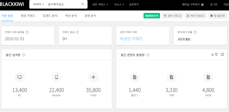 상대적으로 블로그 발행량이 적기도 하구요.