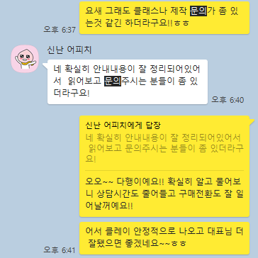 실제 이 대화는 정식운영 첫 달 말미에 나눈 대화예요.