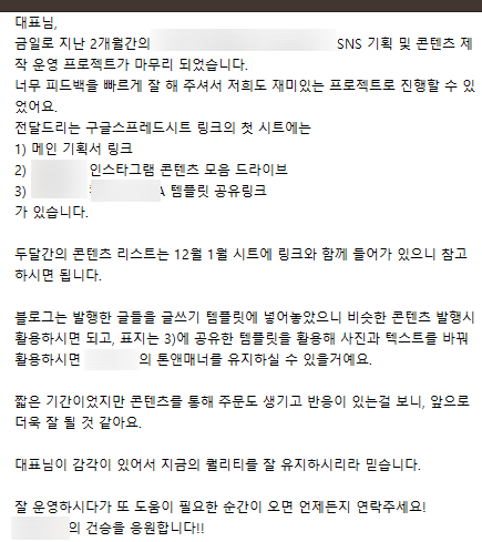 SNS 운영까지 이어져 운영해 주시는 동안