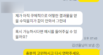 카카오톡 문의 후 꽤 긴 시간 통화를 통해