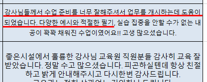종료 후 수강생들의 만족도 조사를 공유해 주곤 합니다.
