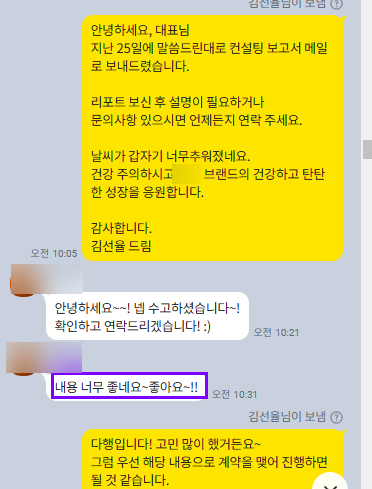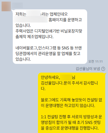브랜딩 관점에서의 SNS 관리운영에 대한 문의였죠.
