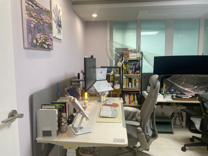 그래서 일하는 공간의 책상 배치를 바꿨습니다.