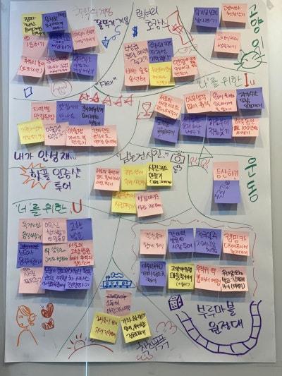 퍼실리테이션이 많이 사용 되고 있었습니다.