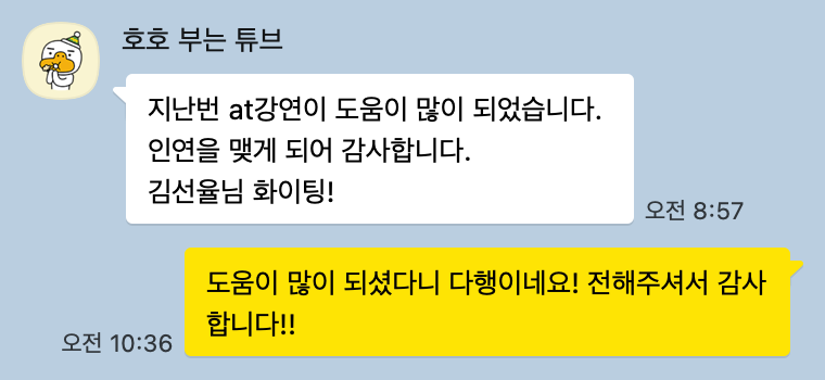 "지난번 aT강연이 도움이 많이 되었습니다.